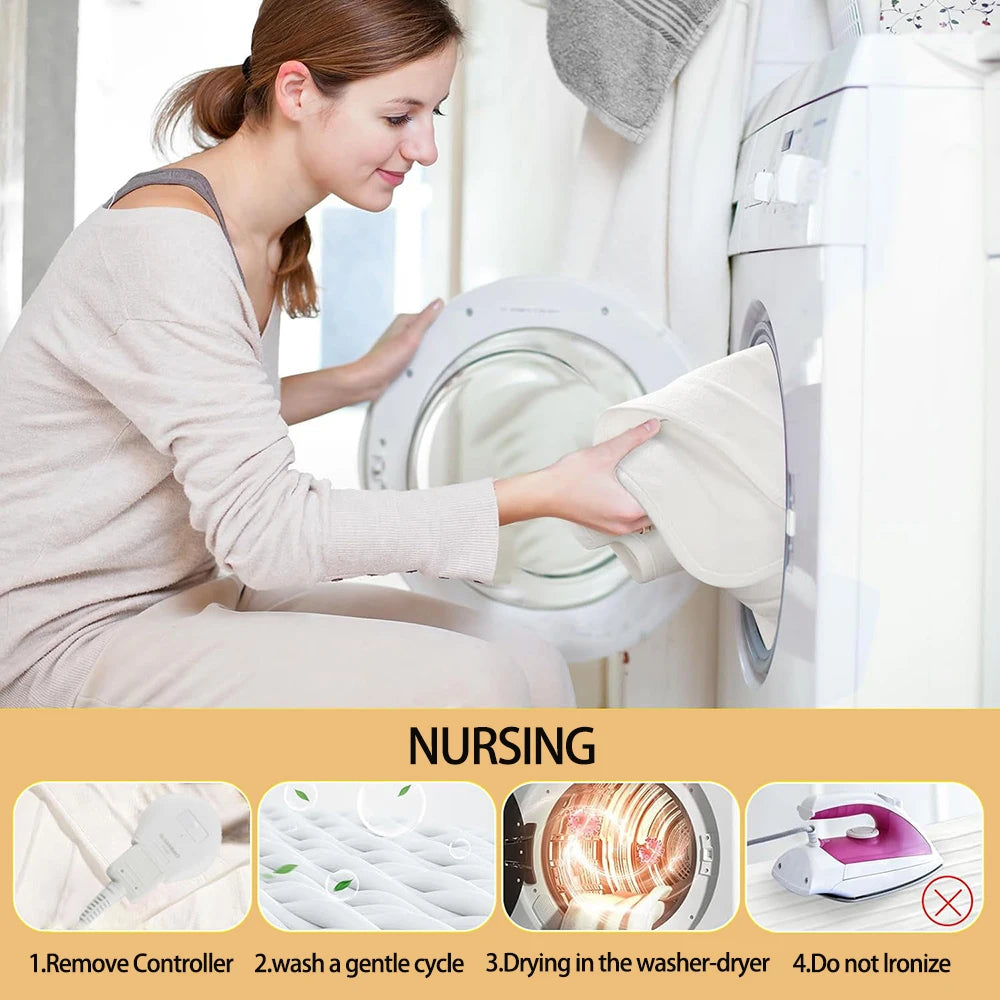 4. Easy to Use:The electric heated blanket has 3 heating Levels for quick heating, and You can choose the appropriate temperature according to your needs. Meanwhile, the cleaning and maintenance of electric blankets are very convenient. Users only need to wipe with a damp cloth or machine wash without special maintenance